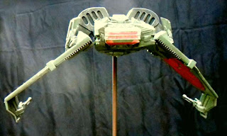 So here's some pictures of my Bandai Ultraman model, done up with aluminum and engine red enamels. I've also got an unbuilt Baltan Seijin (the lobster monster), which will have to accompany Ultraman at some unspecified future date.