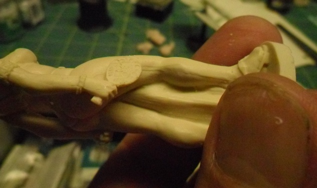 This is a beautiful sculpt, which Scott told me was done by his father, although this figure wasn't without trouble. I got right to work on it and ended up spending about three hours on cleanup of mold seams and resculpting details. Ta-Opet is cast in polyurethane, presumably in an RTV silicone mold. There was the usual mold seam and flash, no big deal, but there were also two parallel seams running alongside that must have come from the master. Maybe you can see them in some of these pictures.